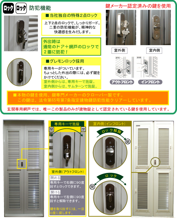 詳細を見る ↓ 【【【基本機能】】】 1.ルーバー脱着機能 ■脱着可能式ルーバー ■取外簡単で水洗いOK! 2. 通風調節機能 ■風調節可動ルーバー ■プライバシー保護 3. 防犯機能 ■内外カギ付き ■上下2点式のロック 4. 防虫ネット機能 ■取り外し可能式アミド ■張り替え簡単 5. 大型ポスト機能 ■郵便受、左右2ヶ所付 ■取手を兼ねた郵便受 6.V型開閉機能 ■本体、ラクラク開閉 ■本体、上部吊りコマ式 7. 高さ調整機能 ■5cmアジャスト材付 ■色々なドアに対応可 ※1〜7は標準装備 8.基本カラー ■3色から選べるカラー 【【【オプション機能】】】 9.バリアフリー機能 ■下枠が脱着可能式 ※アミドの使用時は 取り外しできません 10.フィルター機能 ■専用防塵フィルター |